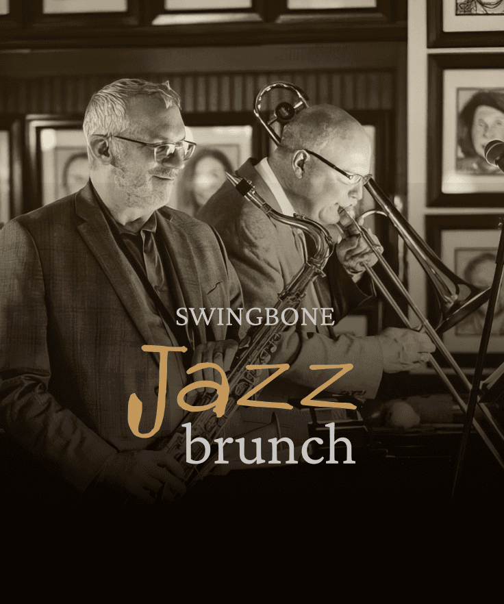 Live jazz in the wine bar with Swingbone, featuring classic jazz inspired by Sinatra, Bennett, and Nat King Cole. Enjoy mimosa flights, peach bellinis, brunch charcuterie boards, Wafflegato dessert, and half off bottles of Sparkling Rosé all February.